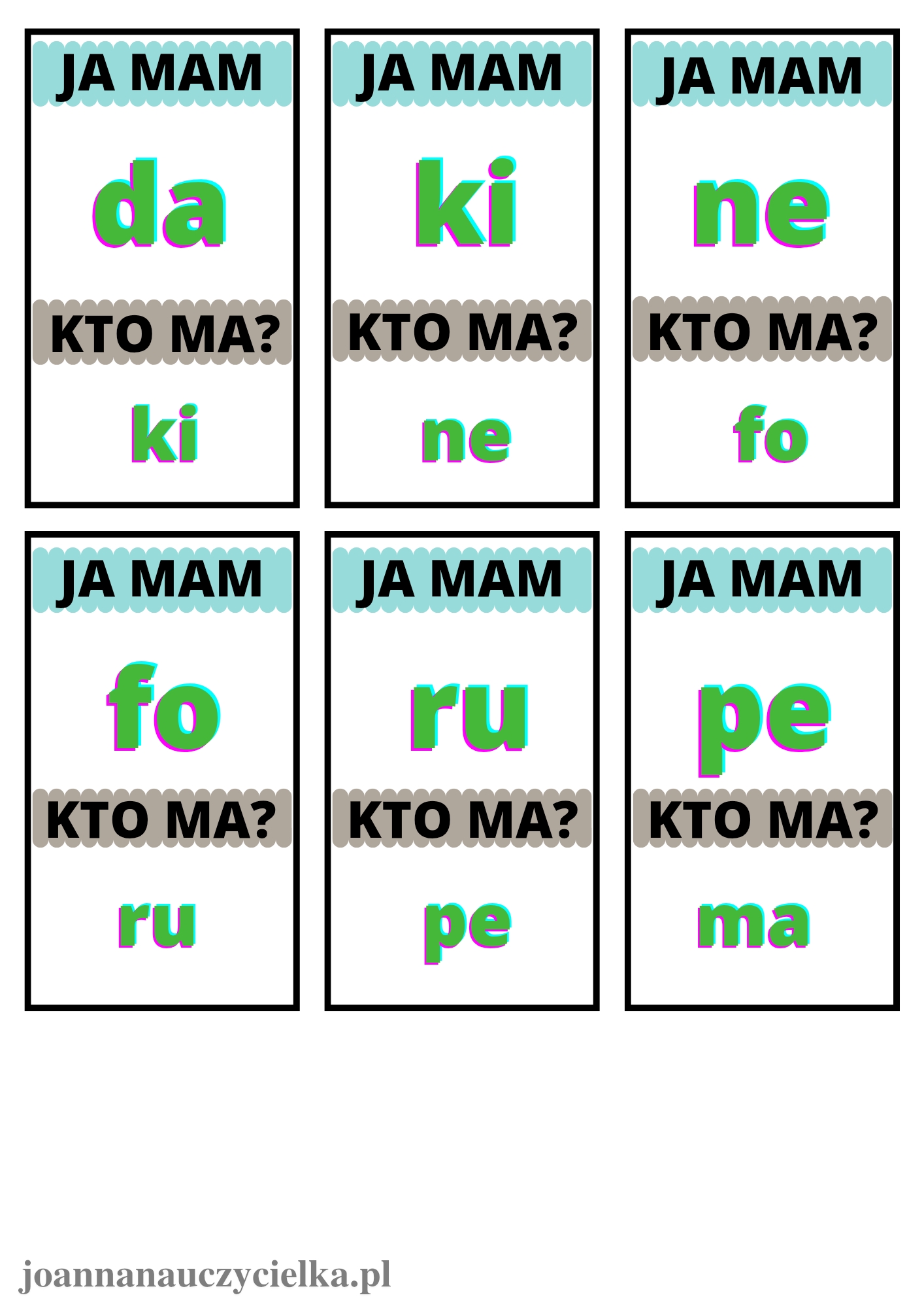 Gra „Ja mam, kto ma?” z sylabami otwartymi to doskonałe narzędzie do pracy indywidualnej i grupowej, polecane nauczycielom, pedagogom, logopedom oraz rodzicom wspierającym naukę czytania u dzieci.