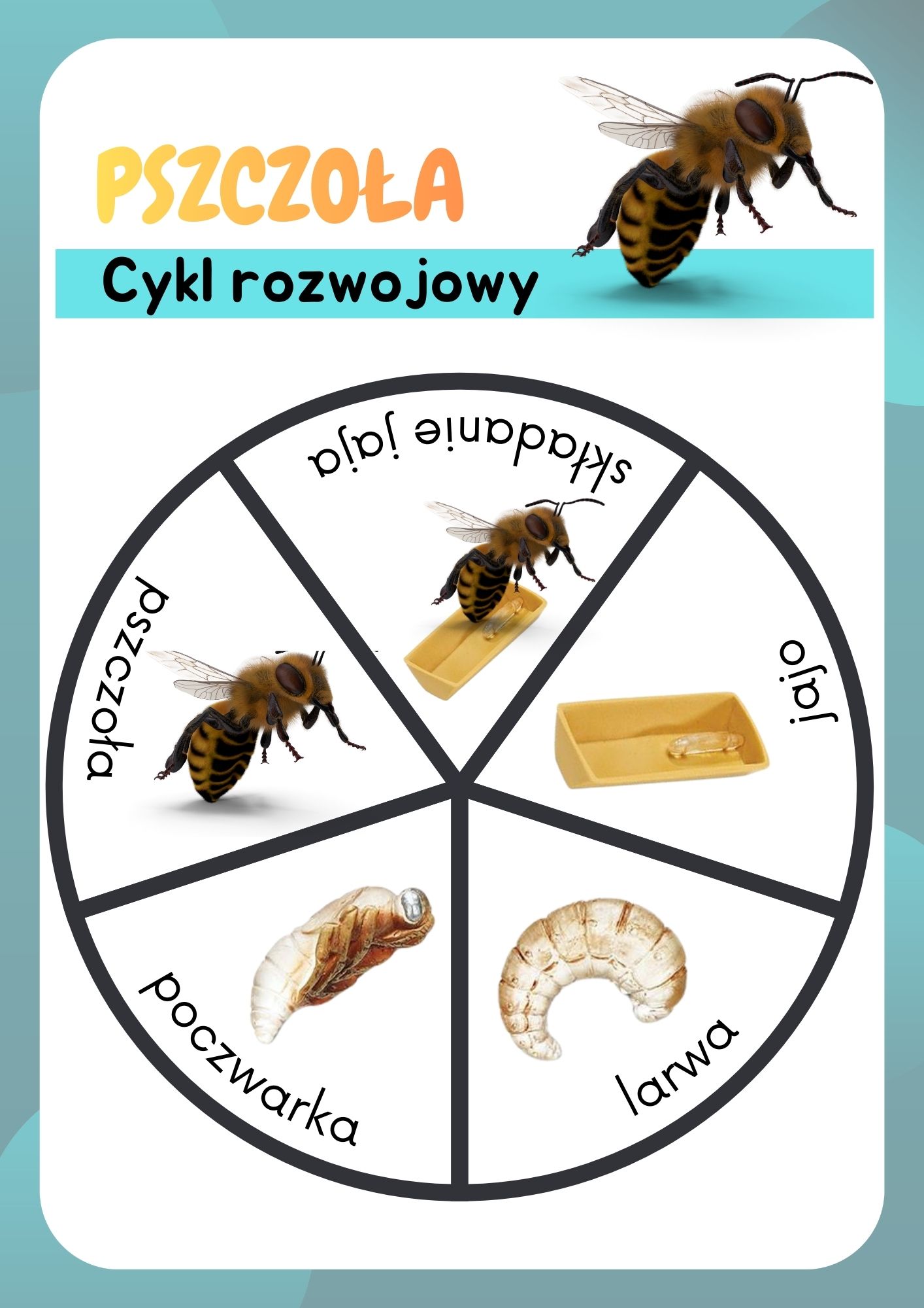 Cykl rozwojowy motyla, pszczoły, biedronki – PDF materiały edukacyjne do druku za darmo