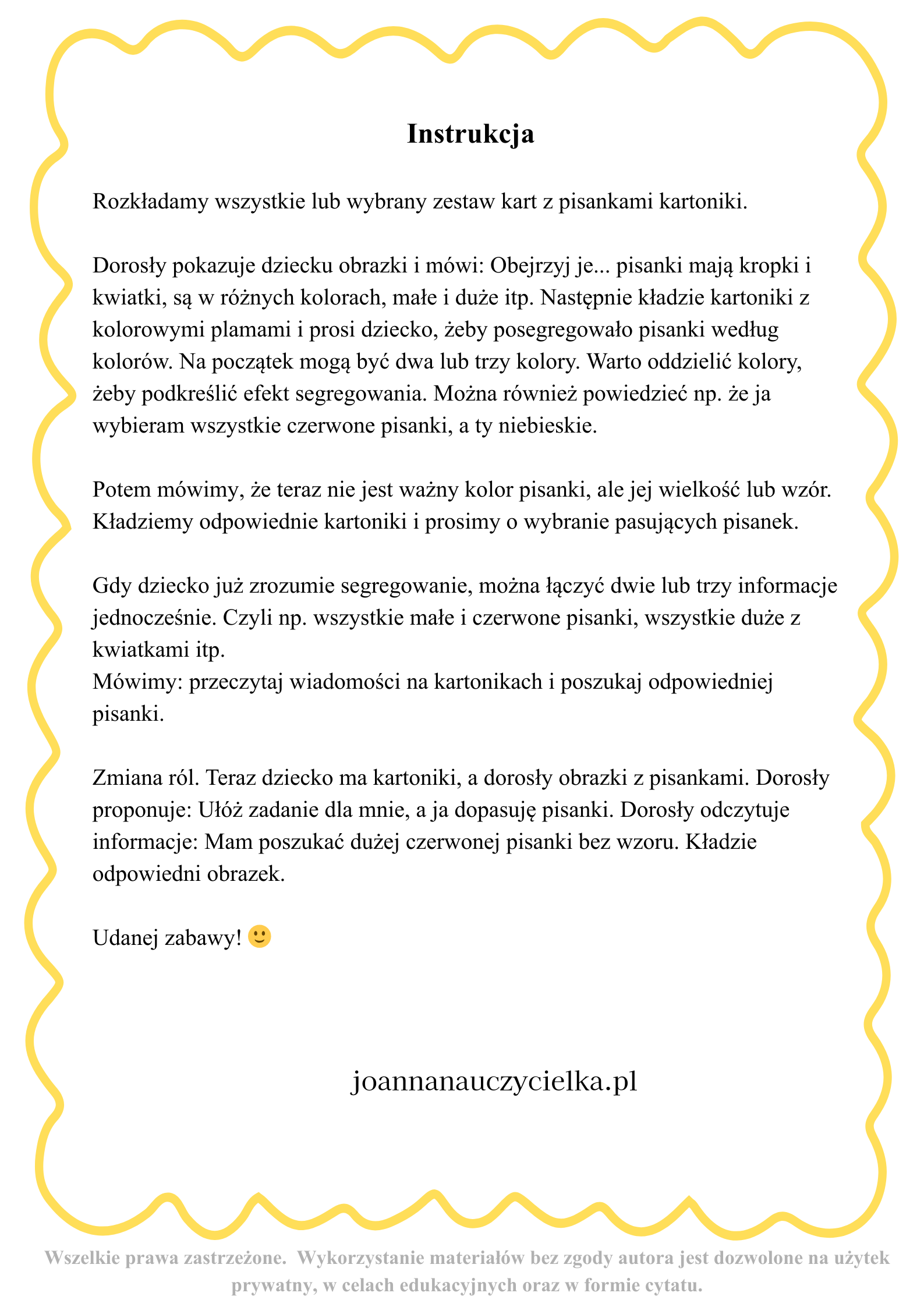 • instrukcję z propozycjami zabaw