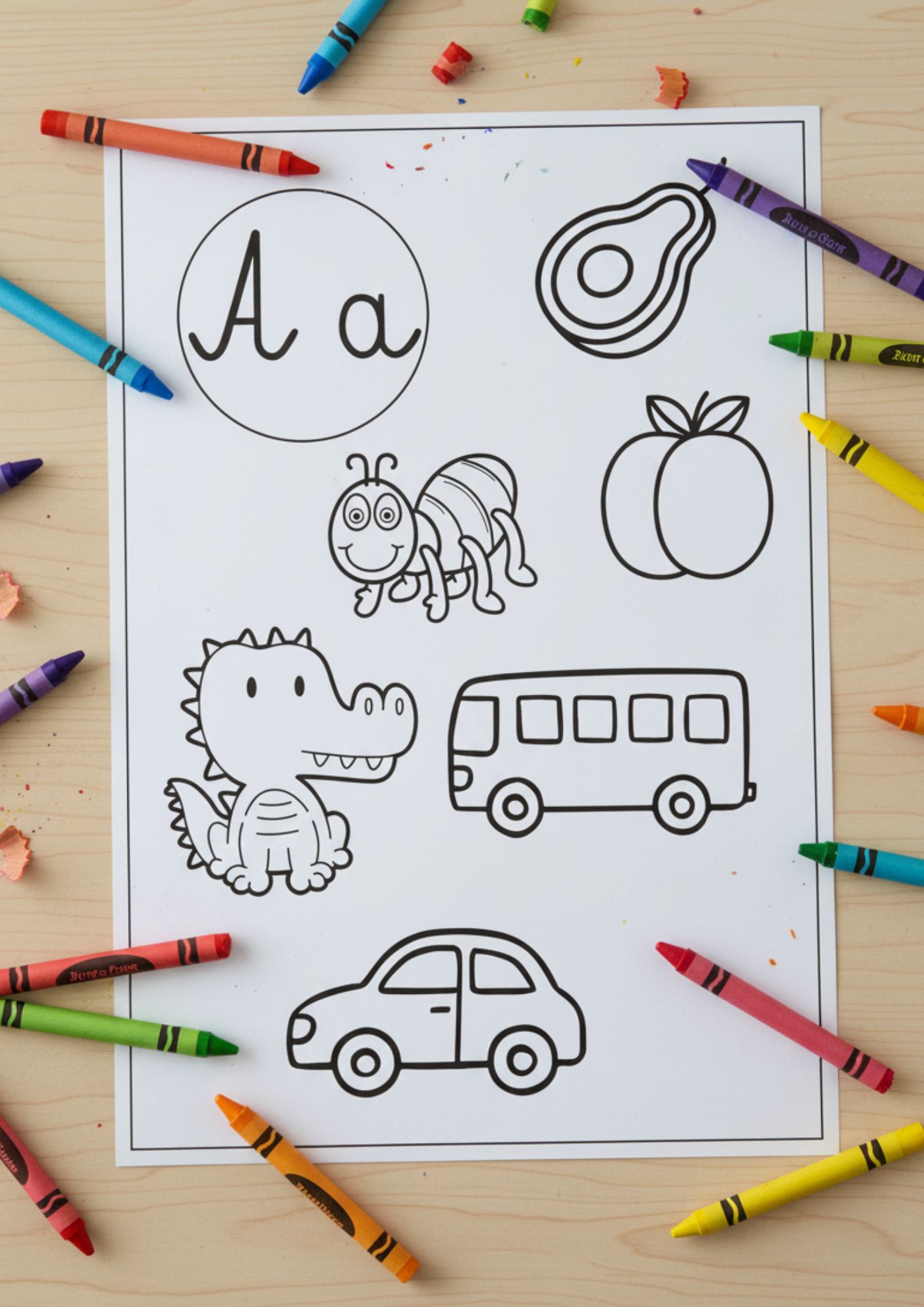 ✔ Kolorowanki literowo-obrazkowe – proste, czytelne ilustracje