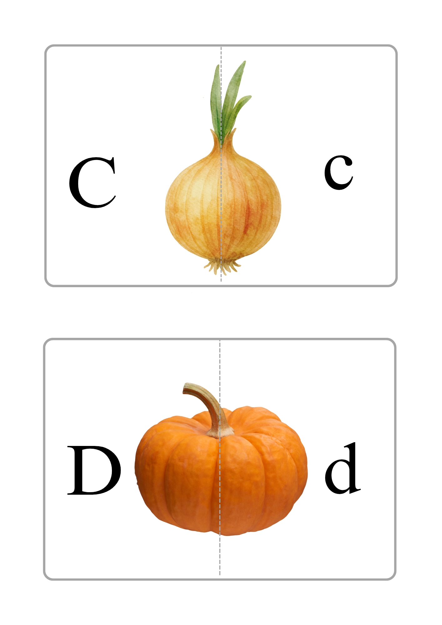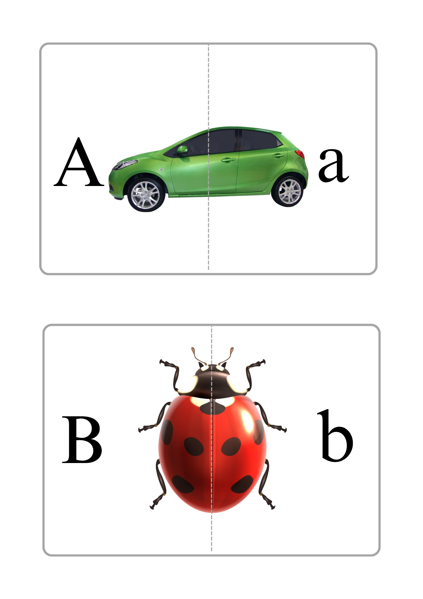 Każda karta składa się z dwóch elementów – litery (małej i wielkiej drukowanej) oraz obrazka rozpoczynającego się daną głoską, które dziecko dopasowuje w formie puzzli. Nauka odbywa się poprzez działanie, obserwację i powtarzanie.