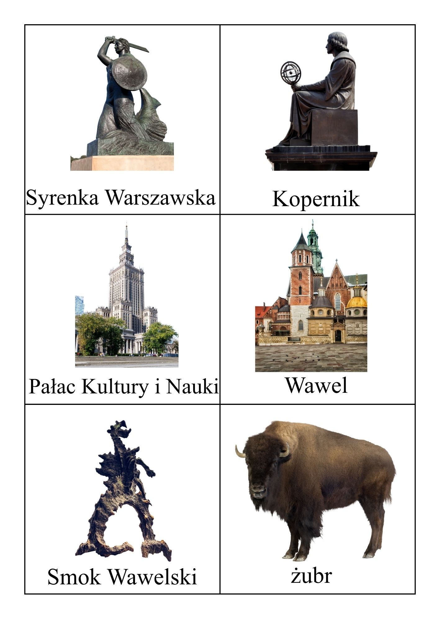 ✔ 16 symboli Polski (m.in. Syrenka Warszawska, Smok Wawelski, żubr, Wawel, Pałac Kultury i Nauki)